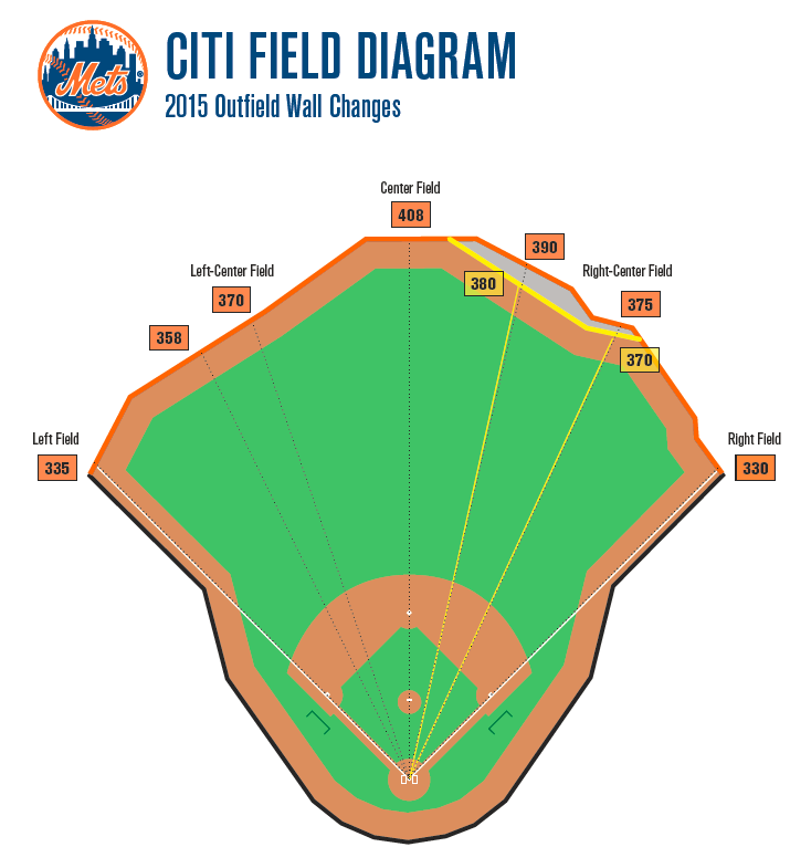 Hitting performance at home is still definitely an issue that the club needs to work out. In 2014 they batted .252 away and just .224 at home (ESPN.com). Those numbers are likely what prompted the decision to move in the Citi Field fences once again, this time focused on the right-center field gap. That area is one that before the move was extremely deep, but now will be shorter by around ten feet on average. Hopefully the move will help lefty hitters like Lucas Duda, who already had 30 home runs last year, and Curtis Granderson who hit 20. The move should overall benefit the Mets considering the plethora of pitching they currently have.